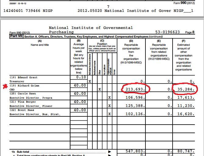 This morning by way of e-mail, I received from the NIGP’s Executive Director – Finance & Administration Tina Borger, electronic copies of the not-for-profit’s 990 documents for their fiscal years FY13, FY12, and FY11.