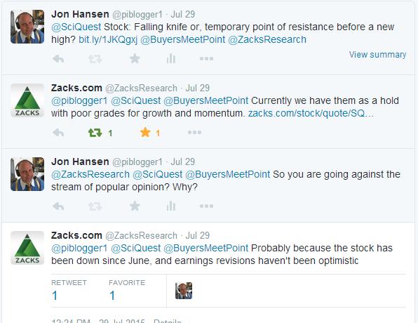 Fast forward to July 29th this year, and note my following Twitter exchange with Zacks: