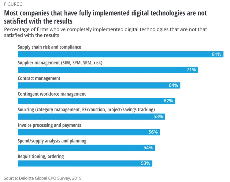 An October 2019 Deloitte survey reported that “a large percentage of companies that have fully implemented these modern technologies are not actually satisfied with the results.”