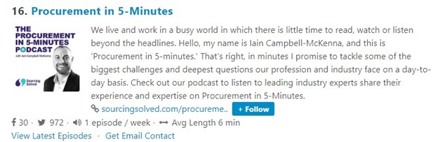So, when I recently came across the Top 20 List for procurement podcasts, I was somewhat excited.