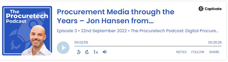 This episode, we’ve got a guest who’s been talking about procurement for decades. With a long-standing blog and a podcast that goes all the way back to 2009, it’s Jon Hansen of Procurement Insights – the original procurement podcaster.