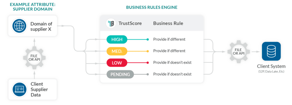The Business Rules Engine works in conjunction with TrustScores to empower Supplier Data Platform users in controlling attribute inclusion in enrichment requests.