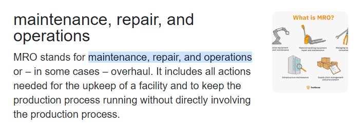 Earlier today, I received an email from Supply Chain Game Changer directing me to read an article about “Maintenance, repair, and overhaul (MRO).”