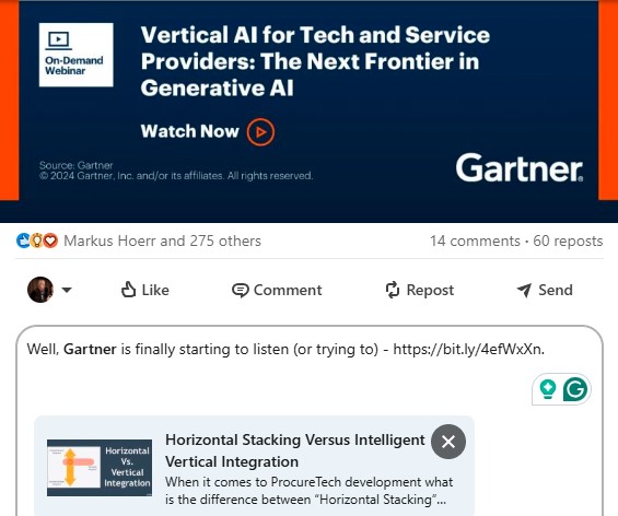 Well, Gartner is finally starting to listen (or trying to) – https://bit.ly/4efWxXn.Tagging my Gartner followers for their thoughts? Kaitlynn Sommers Olivia Montgomery Naveen Mahendra Ron Friedmann Marty Resnick Amenallah Reghimi Mike Boedeker Aditya Malhotra Mike Ciccolella David Hance Amy Irvine