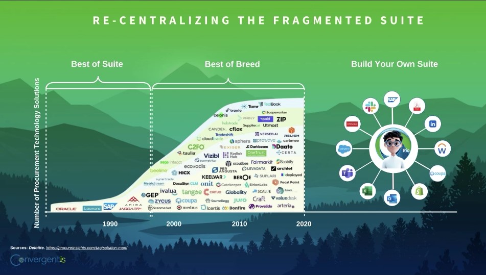 Best of Suite – In theory, end-to-end back-end platforms consisting of multiple Best of Breed front-end bolt-on ProcureTech solutions. (Think Mendocino Project, DUET, and Microsoft Office concept)