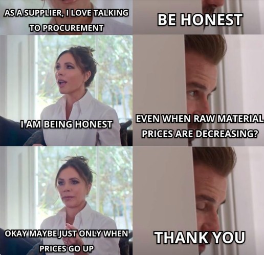 “We love talking to procurement…” Really? Let’s be honest—those chats seem to flow better when it’s about justifying price increases rather than revisiting reductions. 👀