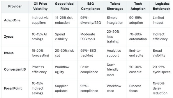The unique benefits these ProcureTech providers bring to Chevron’s 2025 challenges are: