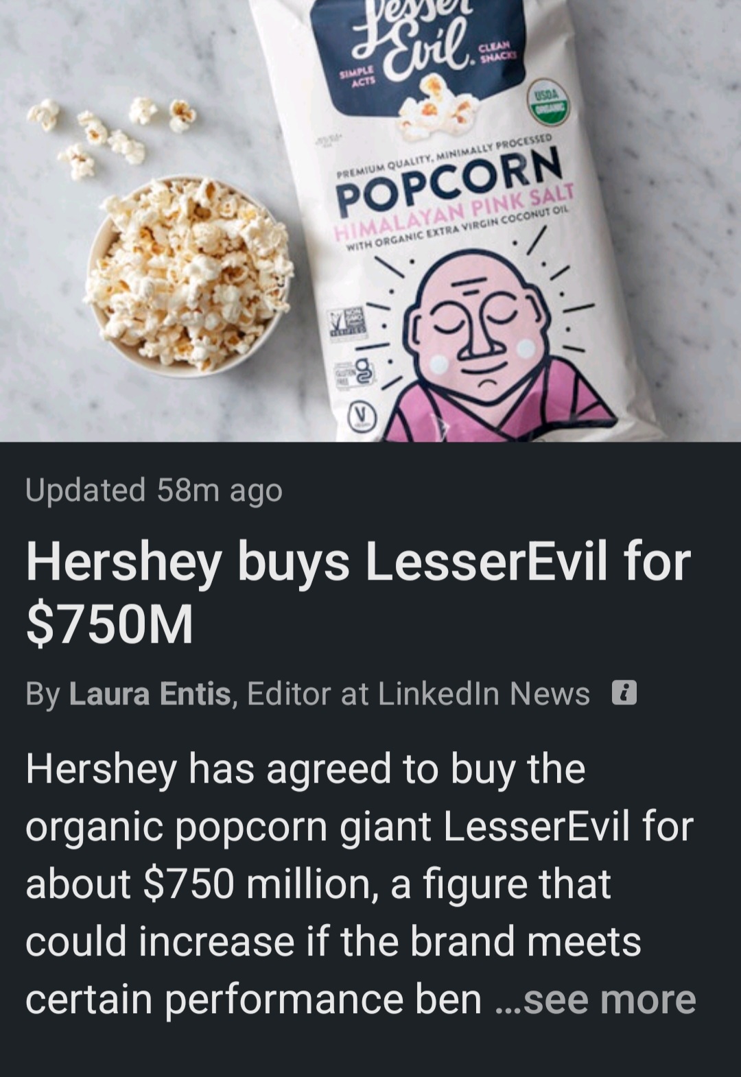 What does a 2015 article have to do with Hershey’s 2025 acquisition of LesserEvil for $750