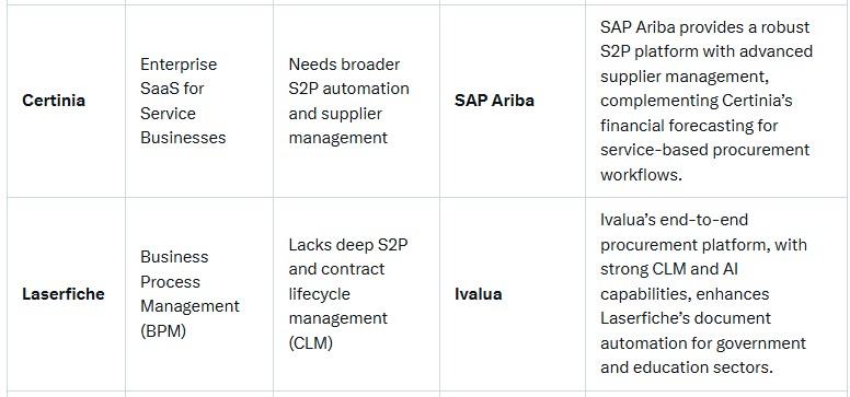 Your interest in Gen AI companies likely brought these firms into focus, as they’re leveraging AI in various capacities (e.g., Certinia’s forecasting, Laserfiche’s OCR). The recent wave of AI adoption in procurement—highlighted by events like the 2024 ProcureTech100 and articles on AI tools (Procurement Magazine, September 2024)—has elevated companies with AI capabilities, even if they weren’t previously prominent in your sphere.