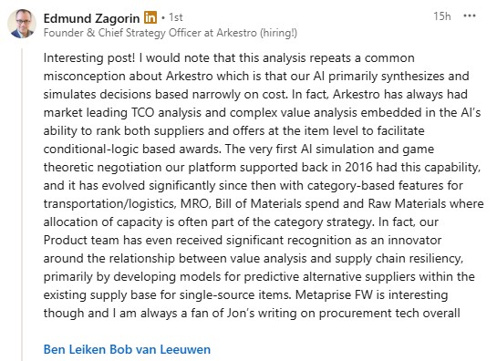 Arkestro’s platform modernizes RAM’s foundational AI concepts—agent-based adaptability, legacy integration, and human-AI synergy—through advanced machine learning and game theory. By automating supplier interactions while preserving strategic oversight, it embodies the evolution of early AI frameworks into today’s predictive, self-optimizing procurement tools.