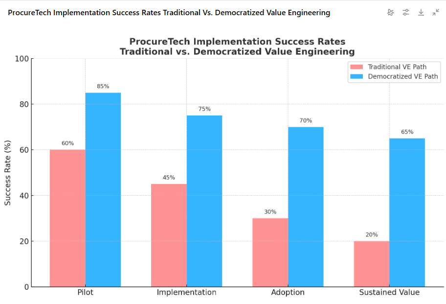 Democratizing value engineering is one of the most high-leverage actions a ProcureTech provider or practitioner team can take. It turns value from a sales tool into an implementation compass—and raises success rates by up to 50%.