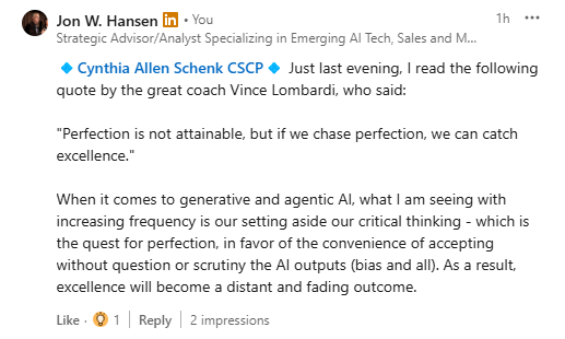 This morning, I woke up to the following comment from a discussion stream on LinkedIn: