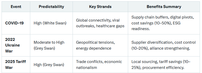 - Benefits: Mitigated 10–20% cost spikes; SAP Ariba ensured 50% disruption reduction.
