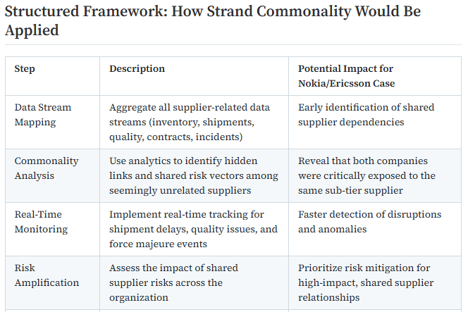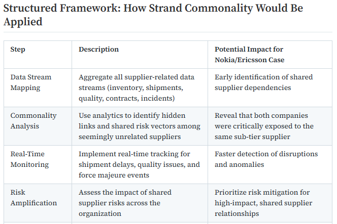 If Hansen’s Strand Commonality Theory had been applied during the famous Nokia–Ericsson supplier risk case (2000)—where a fire at a Philips chip factory caused vastly different outcomes for both companies—it could have completely altered Ericsson’s trajectory and further fortified Nokia’s lead at the time.
