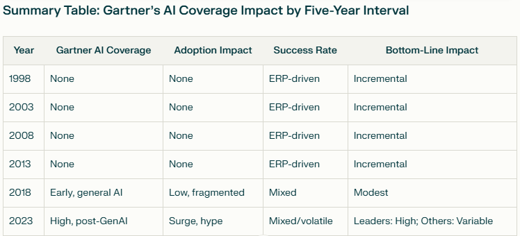 Summary Table: How Gartner’s Late Coverage Fueled the AI Whirlwind
