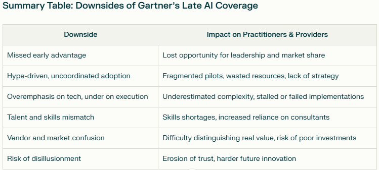 Summary Table: Downsides of Gartner’s Late AI Coverage