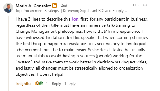 - “If you believe that change management within procurement is critical to success, then you are setting yourself up for failure.”