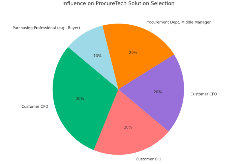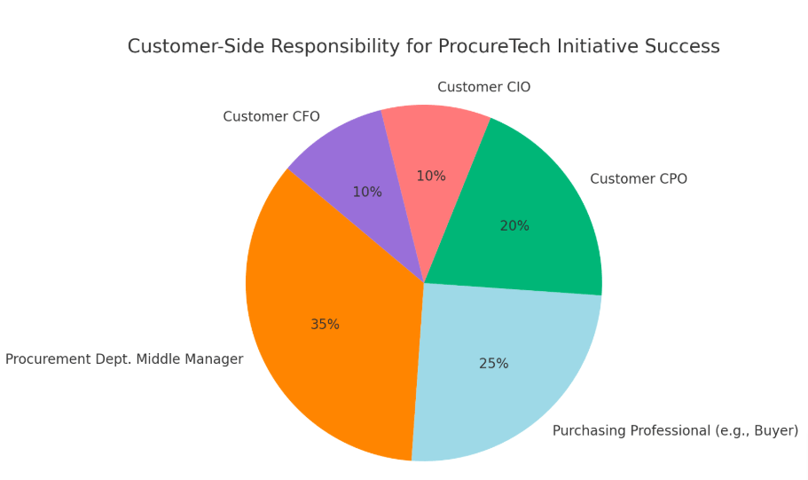 Based on industry benchmarks, case studies, and implementation performance data, the percentage-based contribution to ProcureTech initiative success by internal roles at the solution provider can be reasonably estimated as follows: