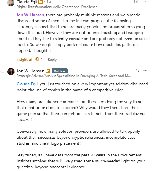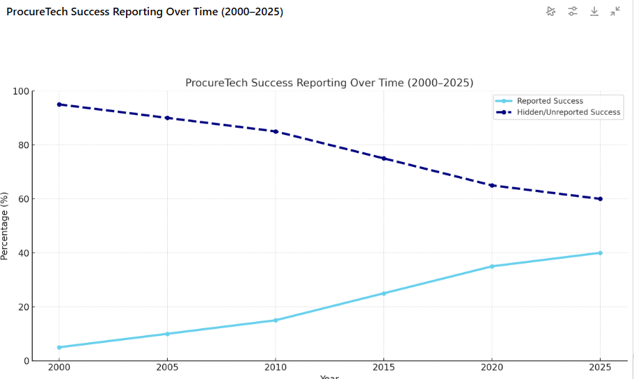 Jon W. Hansen has often highlighted this problem, describing it as the “ProcureTech success mirage”, where public narratives are skewed toward a minority of successful rollouts, while the vast landscape of underperformance remains obscured.