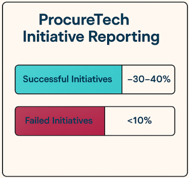 According to research by The Hackett Group and Standish Group, 60–80% of digital procurement initiatives experience delays, cost overruns, or limited adoption, yet only ~20% of those issues reach public awareness.