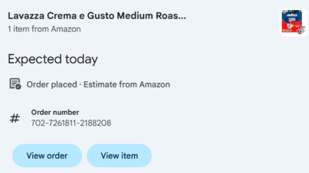 When I woke up this morning, I realized that I was running low on my daily fix of Lavazza. To ensure I had some for Sunday (the next day), I placed the order about half an hour ago (Saturday).
