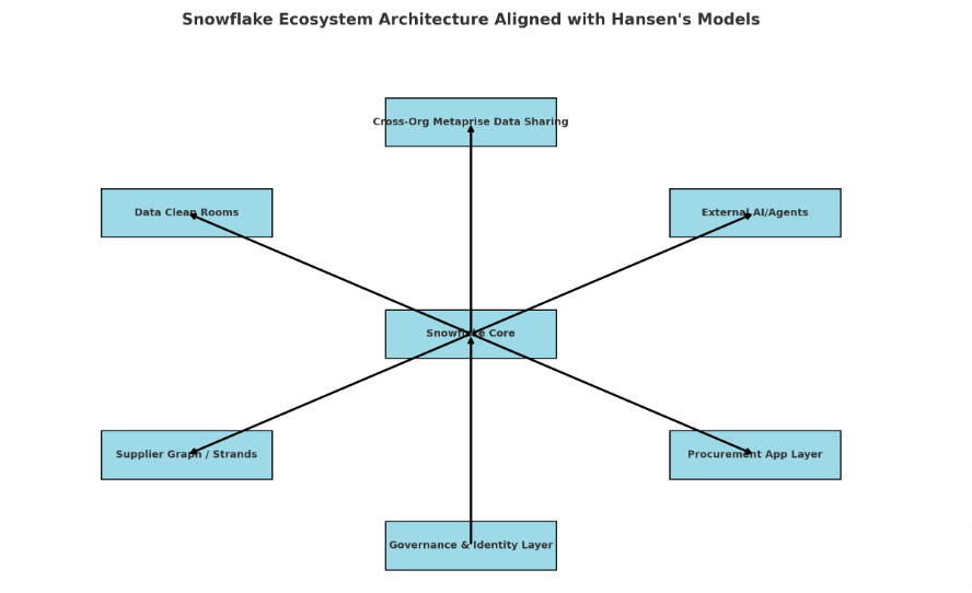 Snowflake strongly reflects Hansen’s Metaprise, agent-based, and strand commonality models by enabling agentic AI, fostering real-time collaboration, unifying diverse data streams, and supporting adaptive, autonomous decision-making at scale. Its architecture and ecosystem position it as a leading platform for organizations seeking to operationalize these advanced procurement and enterprise transformation frameworks