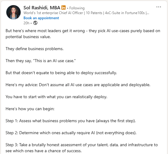 Don Osborn shared your post with me, Sol Rashidi, MBA, asking the following question: