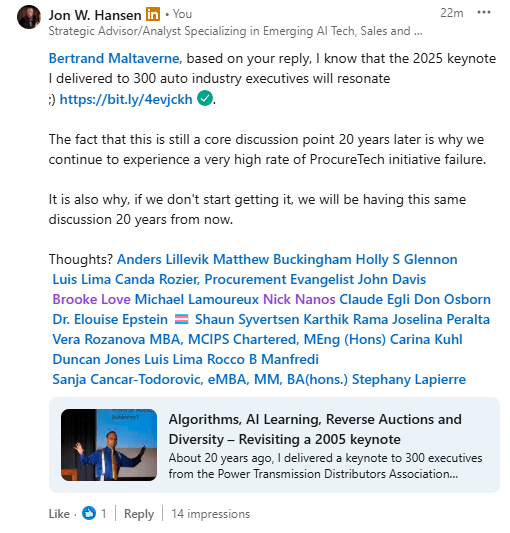 In many previous posts—okay, maybe most of them—I have discussed the fact that unless we change our mindset and approach to ProcureTech initiative strategies, we will look back at today’s technology with the same dismissive attitude we now have towards 10GB HDDs and 2800 Mbps modems.