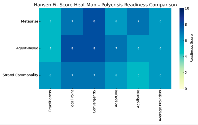 The Hansen Fit Score—comprising the Metaprise, Agent-Based, and Strand Commonality models—equips procurement practitioners and ProcureTech providers with a future-proof framework to navigate the polycrisis era (simultaneous geopolitical, climate, supply chain, and economic crises). Unlike traditional static models, Hansen’s approach transforms procurement into a self-optimizing, predictive ecosystem that thrives amid volatility. Below is a breakdown of how each model drives resilience: