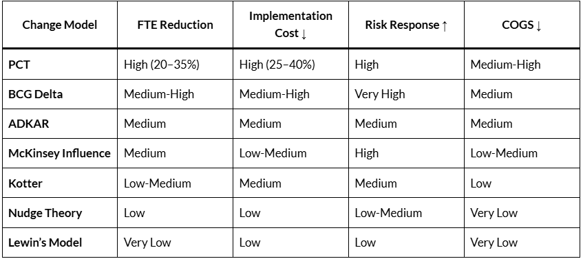 “When layered with Hansen’s models, change systems like PCT and BCG Delta don’t just manage change—they architect resilience, compress timelines, and unlock value across FTE optimization, supplier cost management, and risk buffering.”