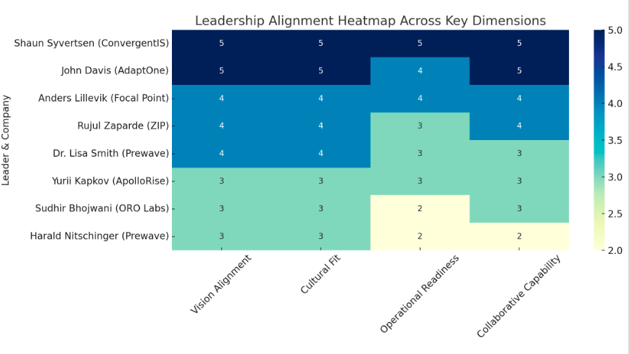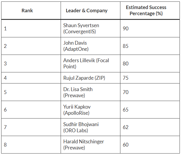 Based on the prior leadership alignment analysis, the estimated success percentages for each leader’s collaboration with Scott Hutton of Biodesix are presented, ranked from the greatest to the least likelihood of a successful ProcureTech initiative. The percentage reflects the relative probability of a highly successful outcome, driven by leadership and cultural alignment.