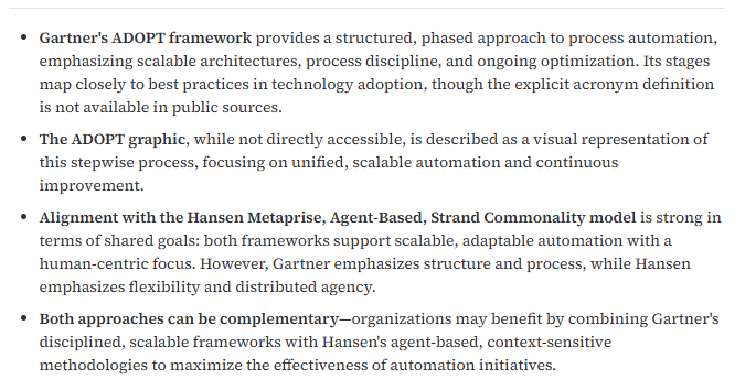 In an era defined by black swan disruptions, stakeholder complexity, and ESG/risk scrutiny, frameworks like ADOPT are only as strong as their fit models. The Hansen Fit Score brings that fit—making the integration of ADOPT and HFS not just advisable, but essential for scalable, sustainable automation success.