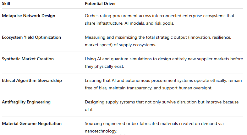These will emerge as entirely new disciplines as procurement integrates into adaptive, self-healing ecosystems.