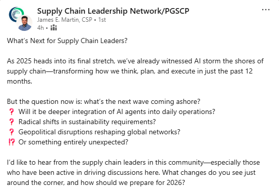 Drawing on the Procurement Insights Archives and Jon Hansen’s ongoing analysis and social media commentary, here’s how he would likely answer “What’s Next for Supply Chain Leaders?” as 2025 draws to a close: