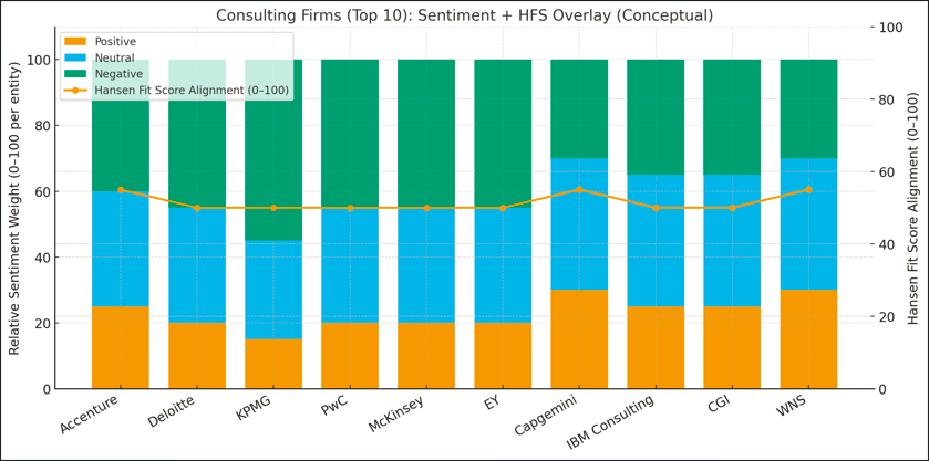 Here are the Top 10 Consulting FirmsI have covered between 2007 and 2025, including the percentage of posts that were Positive, Neutral, or Negative, along with their current Hansen Fit Score based on the 18 years.