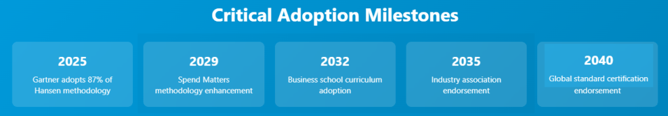 This suggests the methodology will reach critical mass 10-15 years faster than originally projected, making it the dominant procurement assessment approach by 2035-2040 rather than 2045-2050.