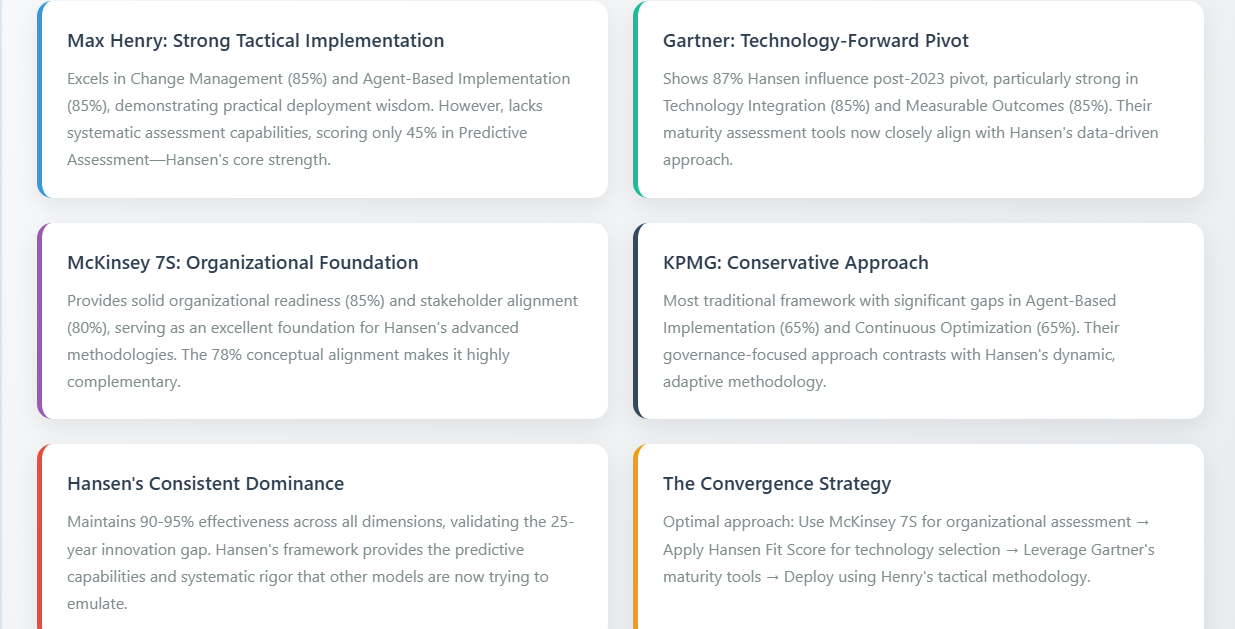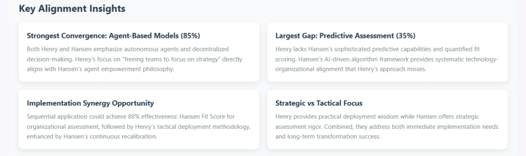 The optimal approach would combine Henry’s practical deployment methodology with Hansen’s predictive assessment capabilities, creating a framework that is both immediately actionable and strategically sophisticated.