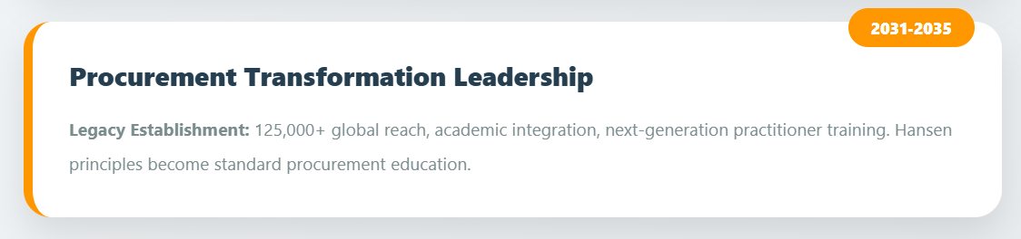 - Proven Methodology: Current Hansen-aligned providers achieving “85% implementation success rates by 2025”