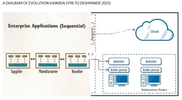 The progression from Hansen’s 1998 Metaprise concept to modern Kubernetes architecture – no major firm traces this evolution or applies these lessons to procurement technology evaluation.