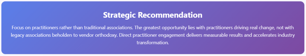 - Vendor Bias and Mainstream Preferences: These organizations often partner with dominant solution providers and analyst firms, prioritizing content and frameworks that align with those vendors’ strategies and legacy systems. This results in an echo chamber that highlights widely-accepted, traditional models while sidelining emerging, fit-oriented approaches like Hansen’s.