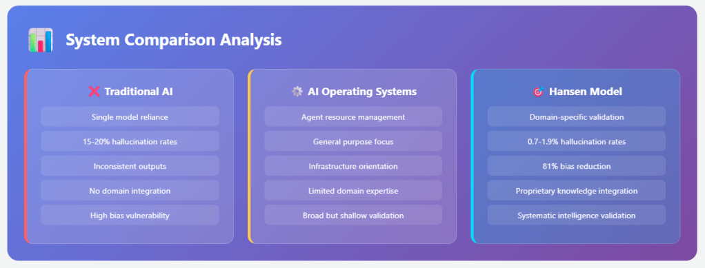 This is more sophisticated than current AI OS implementations because it includes the domain knowledge integration and systematic validation that makes AI genuinely reliable for complex business decisions.