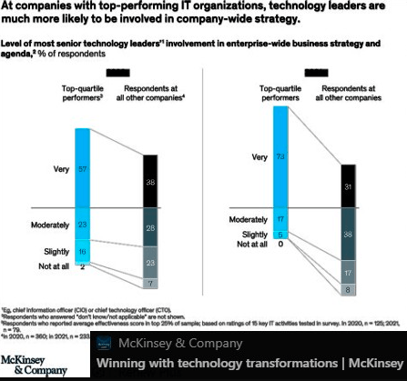 The McKinsey graphic is a visual representation of what the Hansen archives would call a healthy Metaprise. It provides data showing that when the technology function is elevated from an isolated “cost center” to a strategic “collaborative” partner, the organization performs better. This strategic involvement is a key component of what the Hansen Fit Score assesses in its models for determining an organization’s readiness for technology transformation.