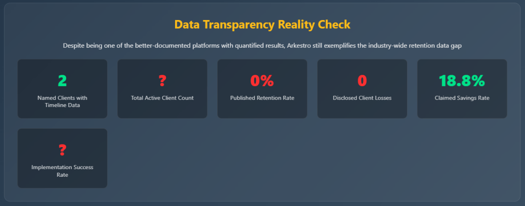 Identification of the Data Gap: The assessment’s finding that there is no publicly available, systematic client retention data is a crucial insight. This confirms the archives’ critique that traditional assessments miss a vital behavioral indicator. The provided data on Arkestro’s clients reinforces this point by showing that even for a well-documented firm, key data like comprehensive client lists and retention rates are missing.
