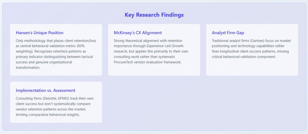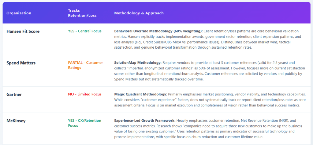 Client retention assessment provides the longitudinal perspective necessary to validate Hansen’s behavioral alignment theory against real-world organizational change patterns.