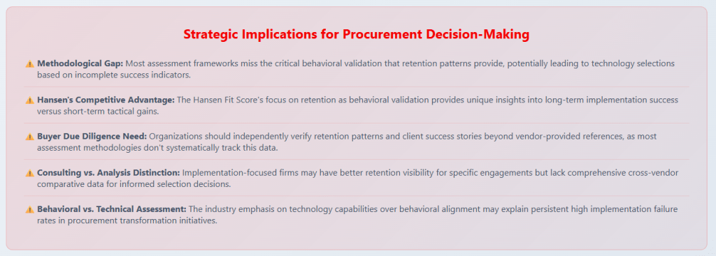 This addresses the critical flaw in traditional ProcureTech assessment – confusing successful deployment with behavioral success: