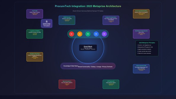 The new ProcureTech Metaprise map is an evidence-first, event-driven blueprint: vendors sit around an event mesh and knowledge/data fabric, each tagged to the five Hansen Fit Score gates (G1–G5) and the agent roles they actually perform, with outcome KPIs and evidence strength attached. Unlike traditional solution or “spider” maps that merely cluster tools by features or category, this view shows how a product works in the live flow—where it plans, executes, verifies, or orchestrates—and what proof it delivers (policy hits, exception MTTR, realized savings, audit trace). In one glance, you see fit + outcomes, not marketing labels; it’s modular, comparable across domains, and directly tied to measurable results and human-in-the-loop control—everything a practitioner needs to pick what will work, not just what looks good.