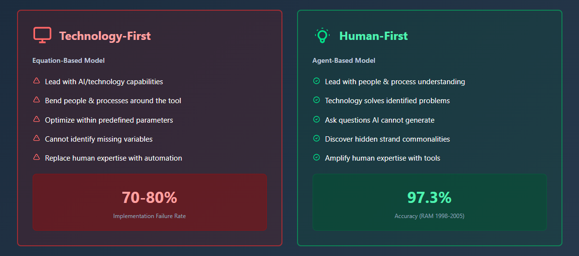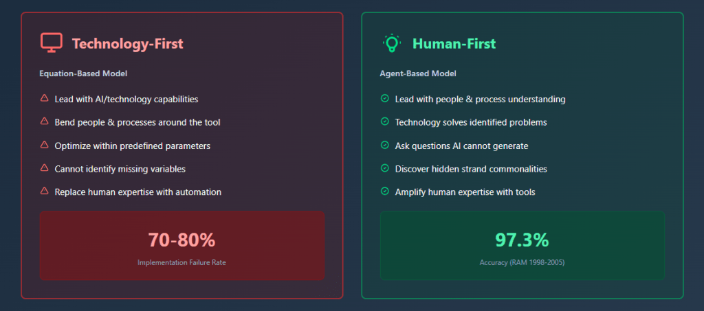 Over the years, I have made the statement: If we don’t adopt a people-led agent-based model and continue to force-feed a technology-led equation-based model, ten years from now we will look back at today’s AI breakthroughs with the same dismissive attitude we now have for 8086 processors, dot matrix printers, and 2800 baud modems.