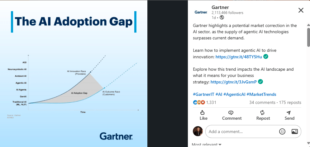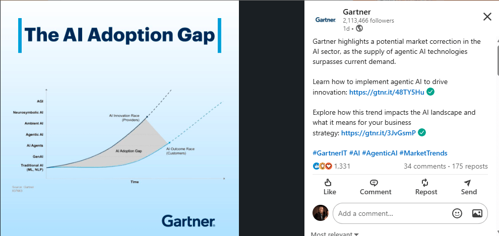 This is gaslighting on an industrial scale. Why are you applying it wrong? Simple, because you are listening to Gartner, which recognizes that organizational readiness is not verified correctly or confirmed before introducing one of their AI selection and implementation frameworks. In short, Gartner gives AI (and all prior technology) a bad name