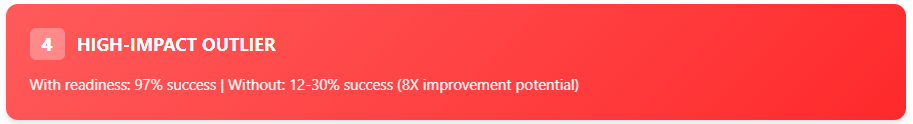 - However, organizations that do incorporate a rigorous, quantifiable readiness assessment (like the Hansen Fit Score, which has shown 75–85% predictive accuracy for successful outcomes) can expect their odds of success to more than double.