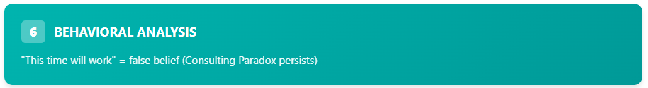 The belief that “this time, this framework will work” is a false belief because it falls into the Consulting Paradox: transformation failure is not a flaw in the strategy (the framework), but a deep, persistent gap in organizational and behavioral readiness.